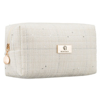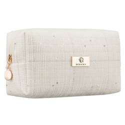 Beige Damen-Kosmetiktasche aus Synthetikmaterial mit dekorativen Pailletten – Rovicky