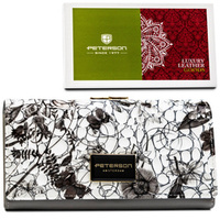 Damen Geldbörse aus grünem Echtleder mit Druckknopf- und Bügelverschluss – Peterson
