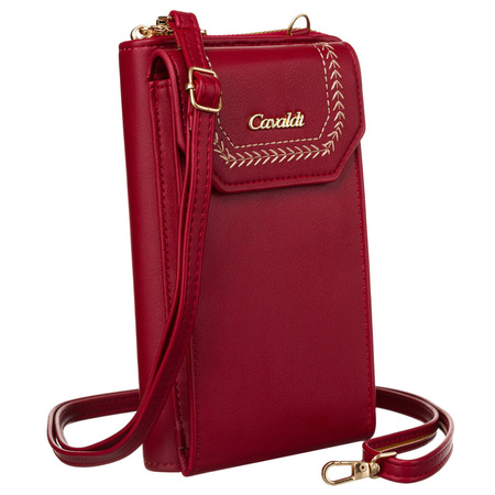 - Kleine Cavaldi Umhängetasche in elegantem, bordeauxrotem Farbton. Dieses Accessoire ist eine Handtasche und Damen-Geldbörse für Ihr Handy in einem - ideal für alltägliche Outfits! Mit Reißverschluss und Druckknopfverschluss.
