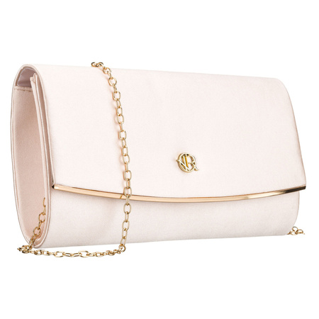 - Beigefarbene Damen-Clutch aus synthetischem Gewebe mit einer Innentasche. Hängt an einer goldenen Kette, die einen schmuckartigen Charakter verleiht. Ein Hauptfach, verschließbar mit einem Magnetclip.