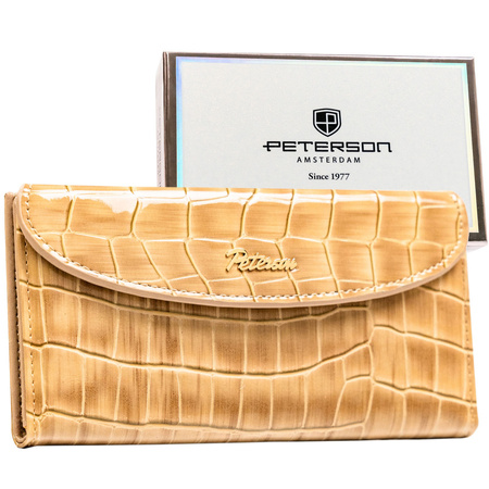 Beige Damen-Geldbörse aus Öko-Leder mit Krokodilhautmuster-Prägung - Peterson