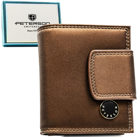 Braune Damen-Geldbörse aus Natur- und Öko-Leder, mit Druckknopf und Bügelverschluss – Peterson