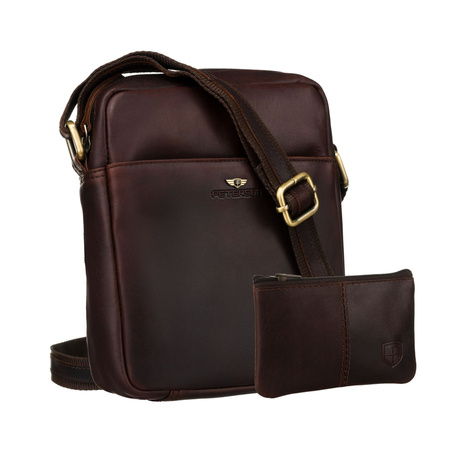Braune Messenger-Tasche aus Naturleder mit Schlüssel-Etui im Set - Peterson