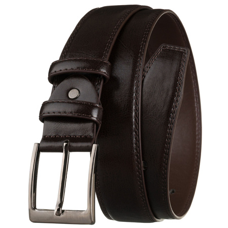 Brauner Herren-Gürtel aus Öko-Leder mit silberner, klassischer Schnalle