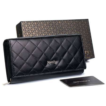 Leder Damen-Geldbörse im Querformat mit Druckknopfverschluss - Rovicky