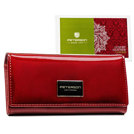 - Modische Damen-Geldbörse von Peterson aus Saffiano-Leder. Groß und geräumig, mit zahlreichen Fächern für Karten und Dokumente, mit Druckknopfverschluss. Die ideale Wahl für Frauen, die Stil und Funktionalität schätzen. Perfekt für den Alltag oder als Gesc