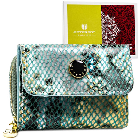 - Die elegante Damen-Geldbörse Peterson mit RFID-Schutz vereint Funktionalität und Stil! Sie verfügt über ein Fach für Banknoten und Münzen. Mit einem Druckknopfverschluss. Ideal als Geschenk - verpackt in einer dekorativen Schachtel. Heben Sie sich mit ein