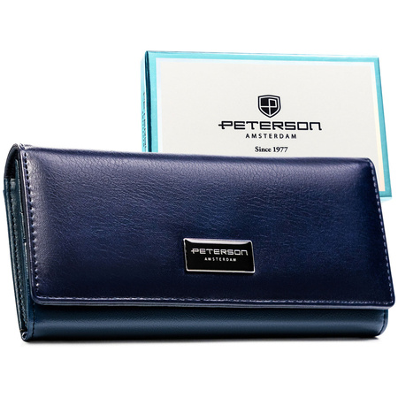 Damen-Geldbörse in Dunkelblau aus natürlichem und ökologischem Leder - Peterson