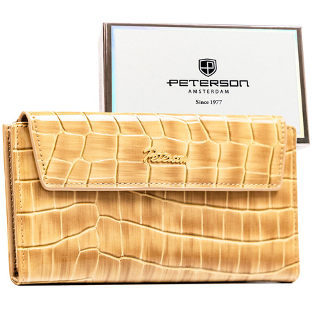 Damen-Geldbörse aus Öko-Leder in Beige mit Krokodilprägung - Peterson