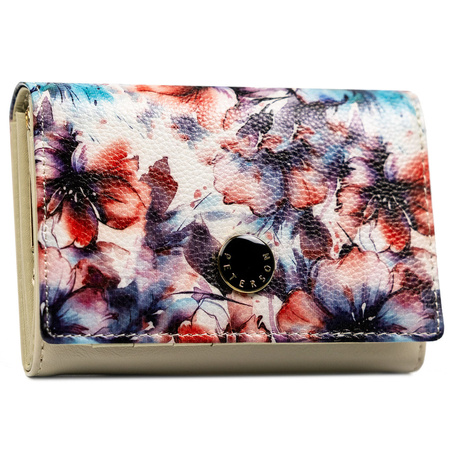 Damen-Geldbörse mit Blumenmuster aus Natur- und Öko-Leder, mit Druckknopfverschluss - Peterson