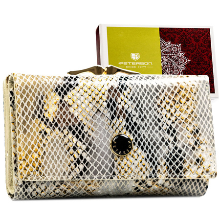 Damen-Geldbörse mit Bügel und Verschluss aus Naturleder mit Schlangenmuster - Peterson
