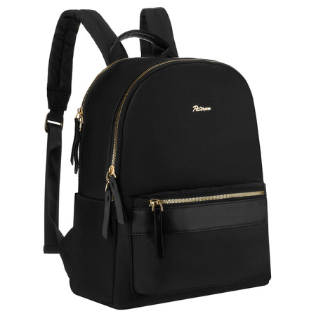 Urbaner Damenrucksack aus Polyester in Schwarz, aufgehängt an verstellbaren Schultergurten - Peterson