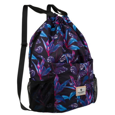 - Städtischer Rucksackbeutel aus Polyester mit einem modischen Pflanzenmuster. Mit einem Kordelzug verschließbar. Ausgestattet mit praktischen Lösungen wie Seitentaschen aus Netzstoff, ideal für eine Wasserflasche oder andere Kleinigkeiten, sowie verstellba