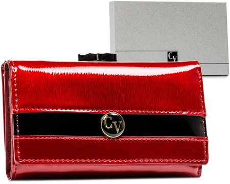 - Elegante, rote Damen-Geldbörse aus lackiertem Naturleder. Ausgestattet mit einem externen Münzfach mit Bügelverschluss. Innen viele Kartenfächer, ein spezielles Fach für Fotos und große Fächer für Dokumente, in die der Fahrzeugschein passt.