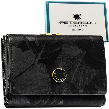 Elegante Damen-Geldbörse aus Natur- und Öko-Leder in Schwarz - Peterson