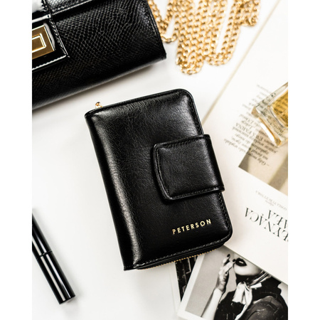 Elegante, kleine Damen-Geldbörse aus ökologischem Leder in Schwarz - Peterson