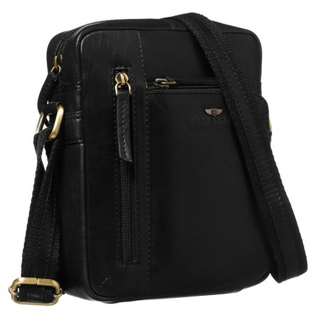 Elegante, schwarze Herren-Umhängetasche aus Naturleder mit Außenfach mit Reißverschluss - Peterson