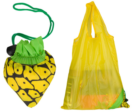 Handliche, leichte und vor allem bequeme Einkaufstasche mit Faltmöglichkeit. Zusammengefaltet hat die Tasche die Form einer Ananas! Zusammengefaltet nimmt sie wenig Platz ein, sodass man sie immer dabei haben kann, z. B. im Rucksack, in der Handtasche oder im Auto oder sogar in der Tasche - für den Fall unerwarteter Einkäufe.
