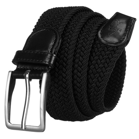 Geflochtener, elastischer Gürtel aus Gewebe in Schwarz mit traditioneller Schnalle - Rovicky