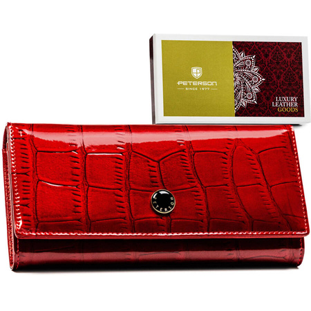 Geräumige, rote Damen-Geldbörse mit Tierprägung auf der Klappe - Peterson