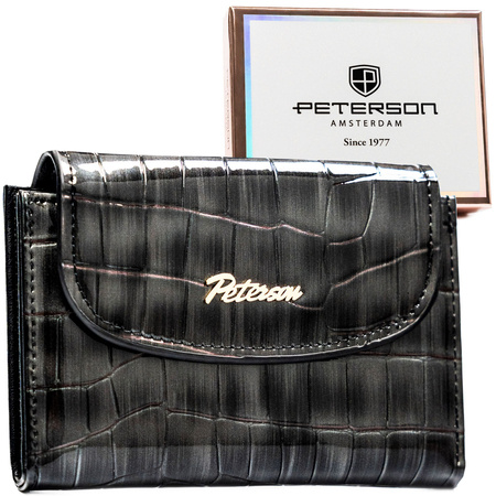 Graue Damen-Geldbörse aus Öko-Leder mit Krokodilhautmuster-Prägung - Peterson