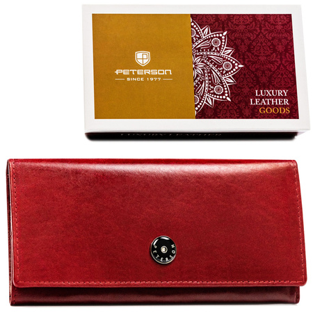Große Damen-Geldbörse aus Leder in Rot mit Druckknopfverschluss - Peterson