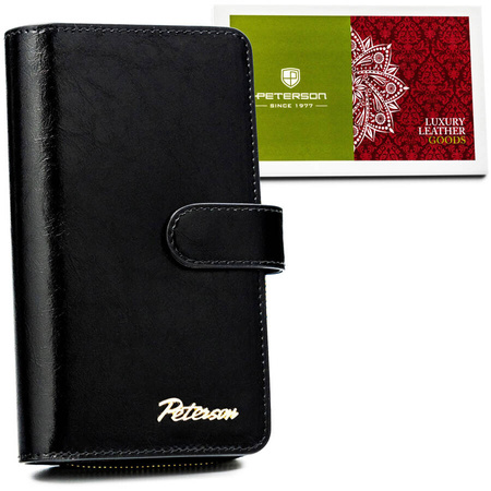 Große Damen-Geldbörse aus Leder in Schwarz mit Reißverschluss und Druckknopfverschluss - Peterson