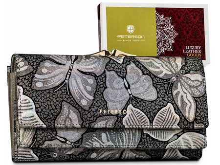 Große Damen Geldbörse aus Leder mit Druckknopf und Bügelverschluss – Peterson