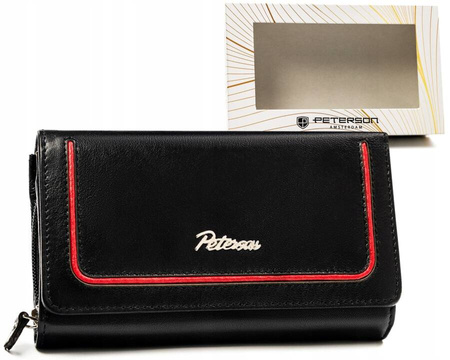 Große Damen Geldbörse aus Leder mit Druckknopf und Reißverschluss – Peterson