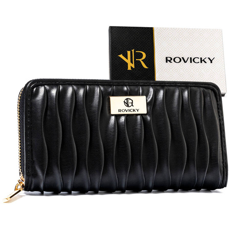 Große Damen-Geldbörse aus ökologischem Leder in Schwarz mit Reißverschluss - Rovicky