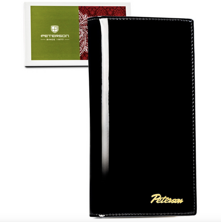 Große, vertikale Damen-Geldbörse aus Leder in Schwarz mit Magnetverschluss - Peterson