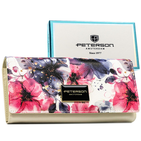 Große Damen-Geldbörse mit Blumenmuster aus Natur- und Öko-Leder mit RFID-System - Peterson