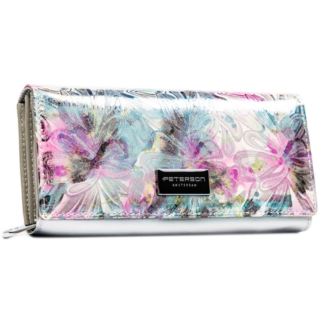 Große Damen-Geldbörse mit RFID-System, entschlüsselt aus mehrfarbigem Natur- und Öko-Leder - Peterson