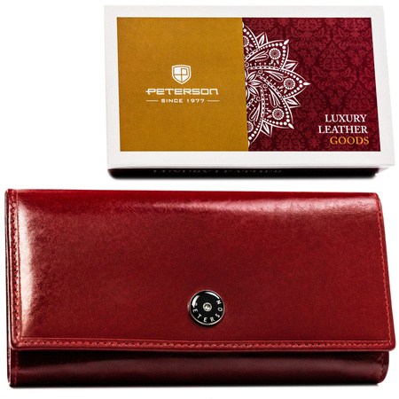 Große Damen-Geldbörse aus Naturleder in roter Farbe mit Klappe mit Druckknopfverschluss - Peterson