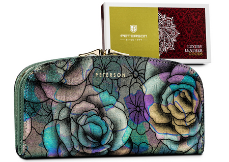 Große, geräumige Geldbörse aus Naturleder mit Blumenmuster – Peterson