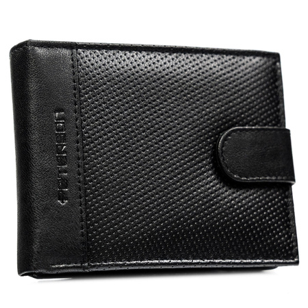 Große Herren-Geldbörse aus Leder in Schwarz mit Druckknopfverschluss - Peterson