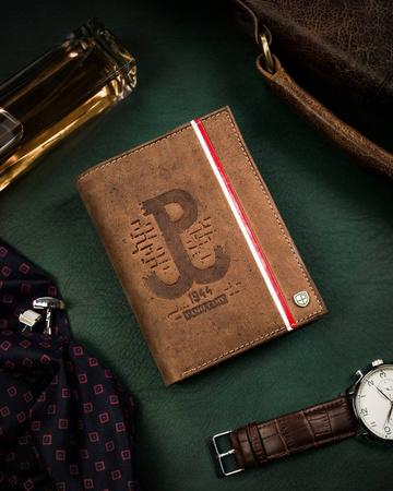 - Sehr langlebig aus hochwertigem Nubuk-Naturleder genäht. Geldbörse im klassischen Stil. Modell in vertikaler Ausrichtung ohne äußeren Verschluss. Auf der Vorderseite ist ein geprägtes Motiv mit dem Zeichen des kämpfenden Polens.