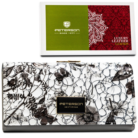 Große, horizontale Damen Geldbörse aus Echtleder mit Druckknopf und Bügelverschluss – Peterson