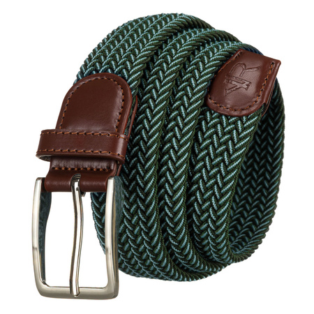 - Grüner Stoffgürtel mit traditioneller Schnalle. Er eignet sich hervorragend sowohl für Jeans als auch für lässigere Outfits. Hergestellt aus einer Kombination aus hochwertigem Synthetikmaterial und weichem Öko-Leder.