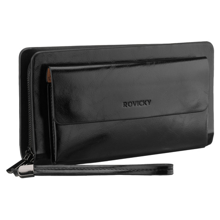 Herren-Handgelenktasche aus Öko-Leder in schwarzer Farbe, mit zwei Fächern - Rovicky