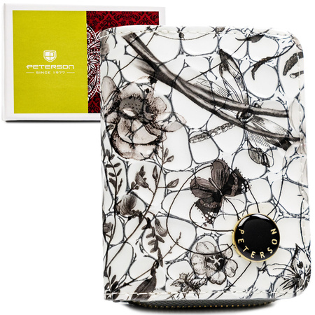 Handliche Damen Geldbörse aus schwarzem Echtleder mit Druckknopf und Reißverschluss – Peterson