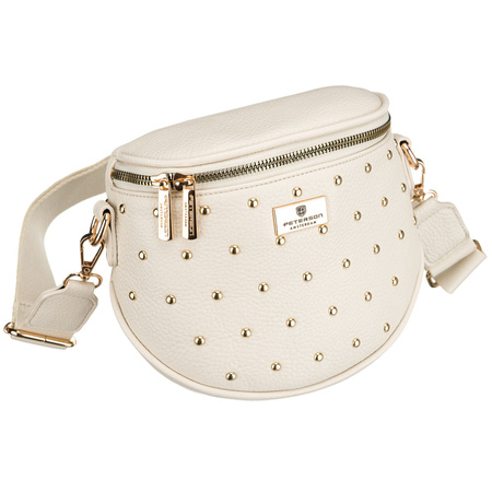 Hellbeige Damen-Bauchtasche aus Kunstleder mit Nieten verziert – Peterson