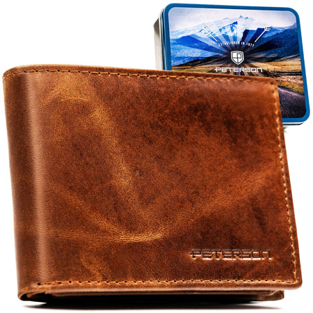 Hellbraune Herren-Geldbörse aus Naturleder ohne äußeren Verschluss - Peterson