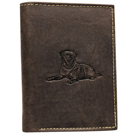 Herren Geldbörse aus braunem Leder mit geprägtem Hundemotiv