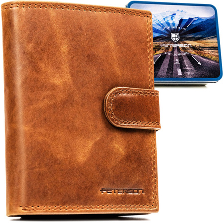 Herren-Geldbörse aus echtem Leder, braun, vertikal mit Druckverschluss - Peterson