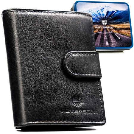 Herren-Geldbörse aus echtem Leder in Schwarz, Modell mit Druckknopfverschluss – Peterson