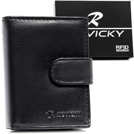 Herren-Geldbörse aus echtem Leder, schwarz, vertikal mit Druckknopfverschluss – Rovicky