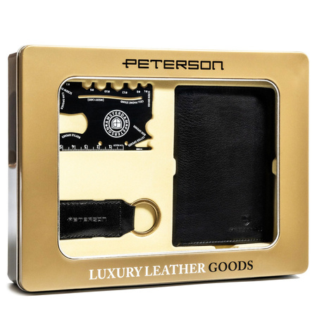 Herren-Geldbörse aus Leder Geschenk mit Schlüsselanhänger und Survival-Karte - Peterson