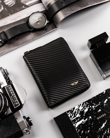 Herren Geldbörse aus Leder mit Reißverschluss und Carbon-Beschichtung – Peterson