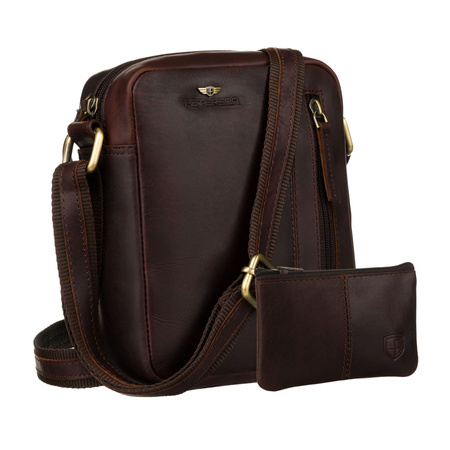 - Braune Peterson Herren-Geldbörse aus Naturleder. Bequeme Umhängetasche mit verstellbarem Gürtel, Reißverschlüssen und zahlreichen Taschen. Ideal für den täglichen Gebrauch – vereint Eleganz mit Funktionalität.